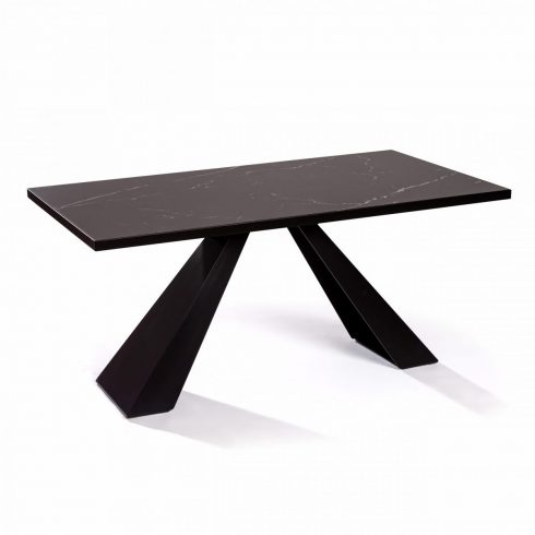 Mesa de comedor  SIGMA estructura de hierro en atura 75cm lacada en negro con sobre de porcelánico negro Marquina brillante y marco de hierro lacado negro, consultar otros sobres.