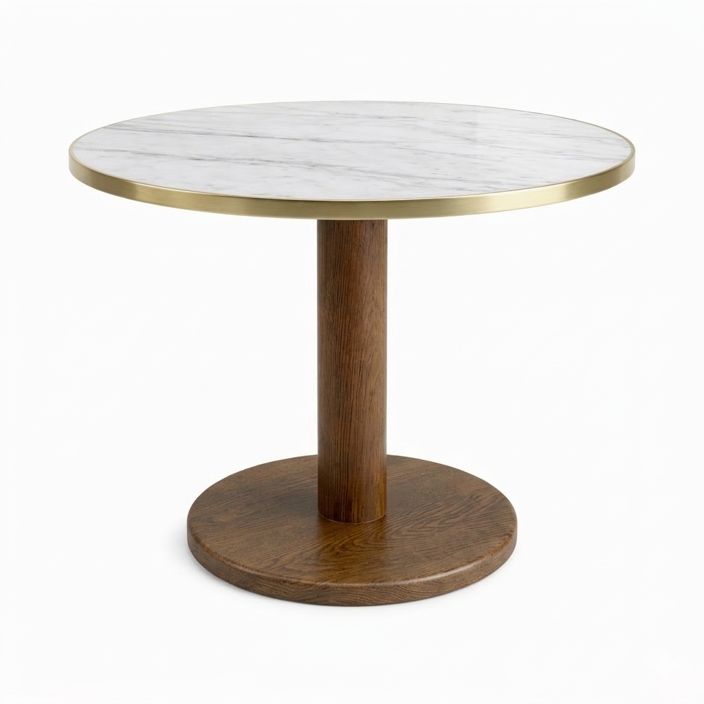 Su combinación de mármol, metal y madera crea un diseño sofisticado y atemporal, ideal para salones, zonas lounge o espacios contract donde se busca una pieza elegante y funcional.