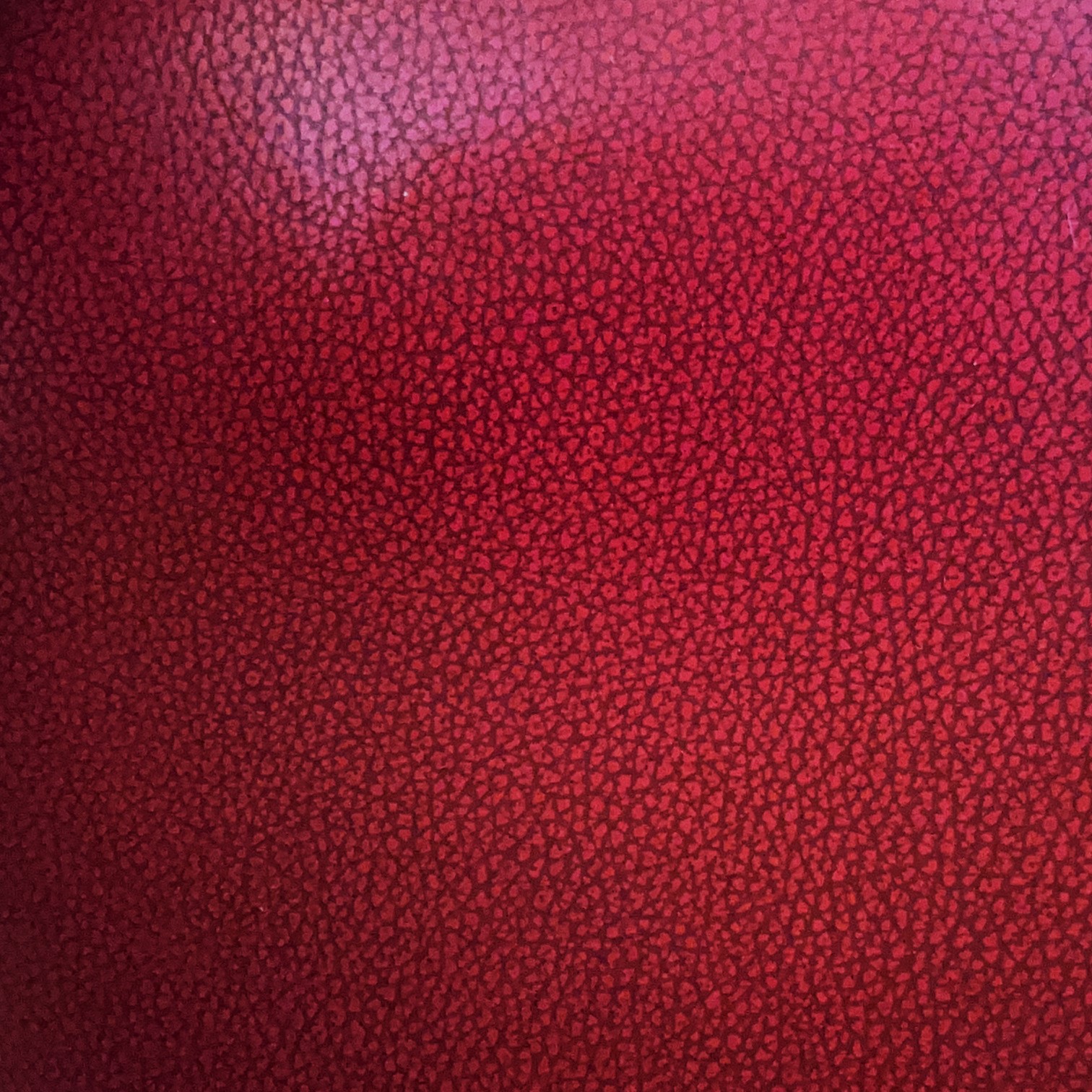 Piel roja envejecido a mano y tratado con lacas naturales.