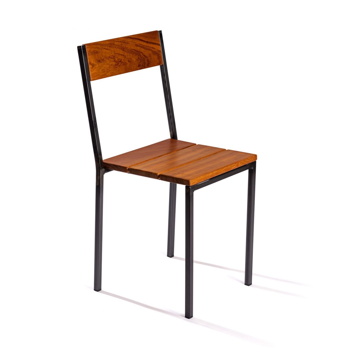 La Silla Zeth está fabricada con una estructura de tubo de hierro y asiento y respaldo de tablones de madera maciza de iroco natural, otorgándole un distintivo estilo industrial. Su diseño la hace indicada para diversos entornos, como contract, hostelería, bares, restaurantes, cafeterías y oficinas, destacando por su resistencia y ligereza.
