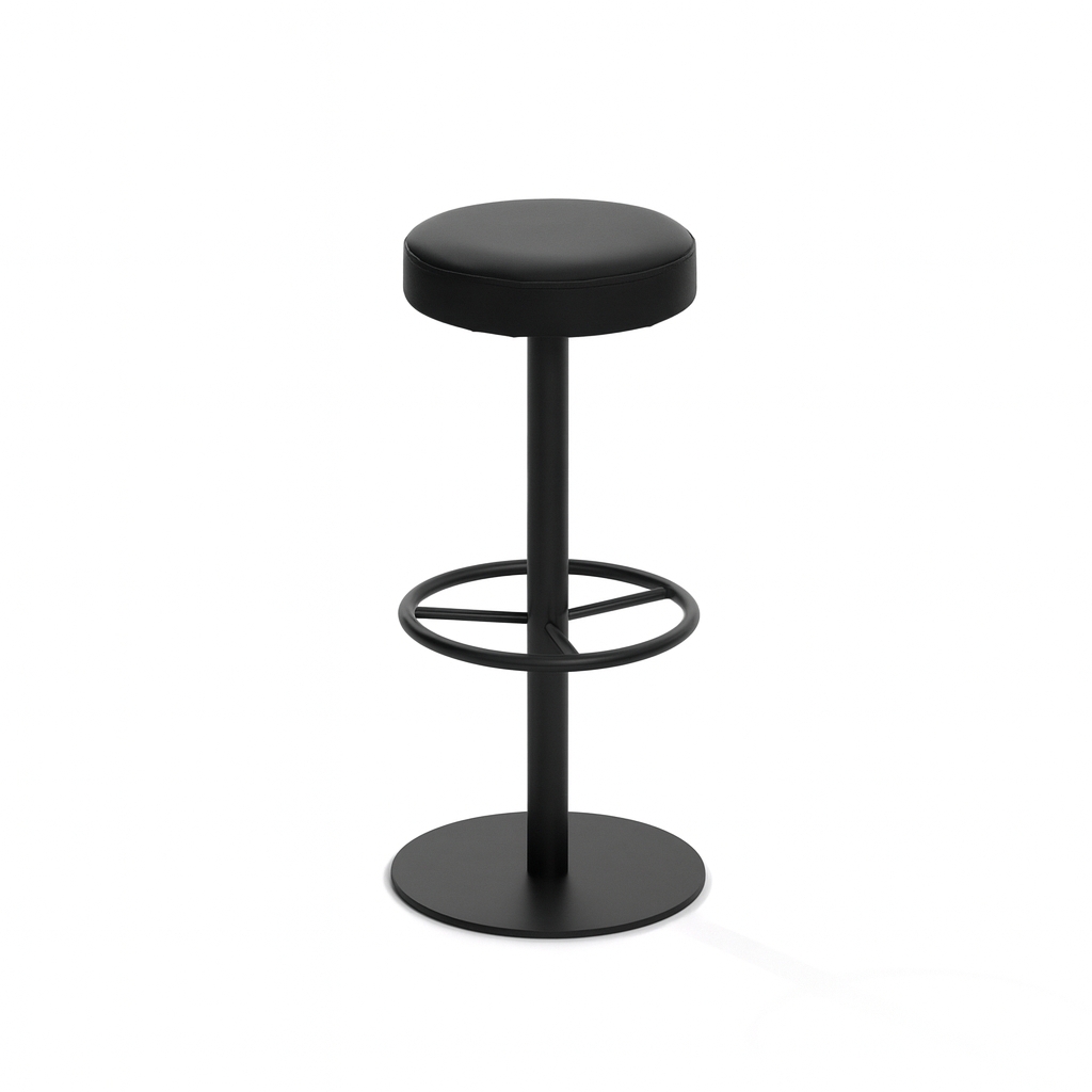 Taburete pie central VOOL  lacado en color negro tapizado con un estilo atemporal ( se puede fabricar en giratorio).